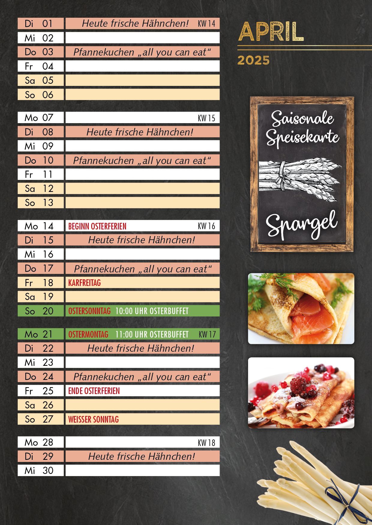 zu folgenden Terminen ist unser Restaurant für das a la Carte geschlossen: